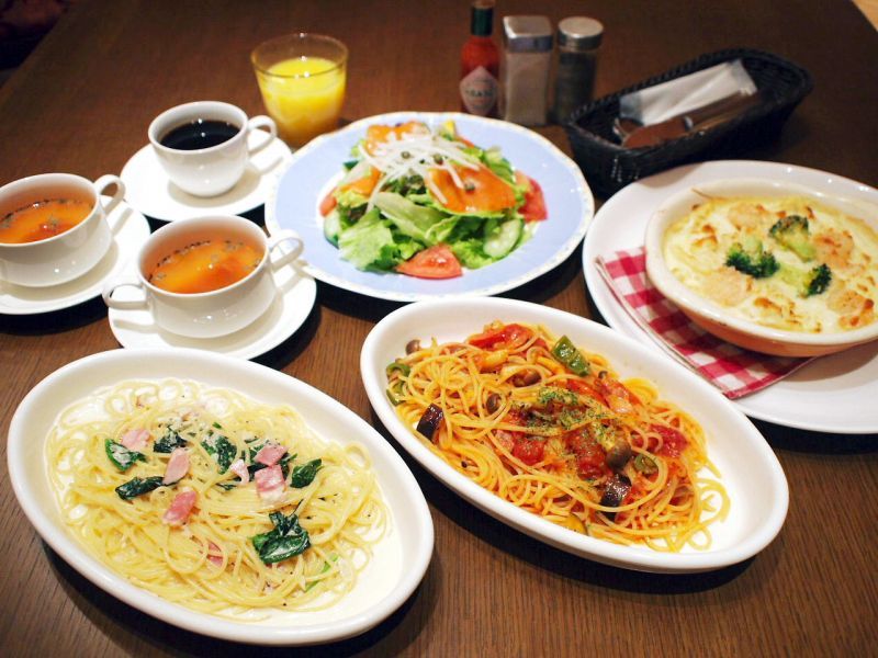 サンドイッチ、オムライス、パスタ、ピザ、ドリア、タコライス、サラダ、デザート、